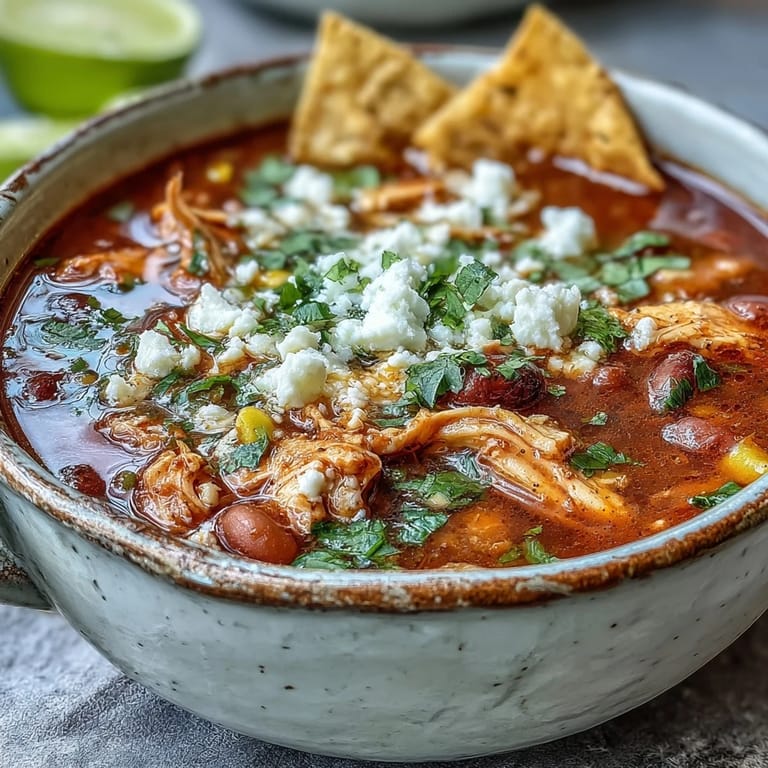 Save My neighbor Maria taught me this soup on a crisp October afternoon when the kitchen filled with the smell of cumin and jalapeños before I'd even finished chopping vegetables. She moved through the steps like she'd made it a thousand times, pausing only to taste and adjust the lime, and I realized then that this wasn't just food—it was her way of saying welcome to the neighborhood. Now whenever I make it, I think of her standing at my stove, nodding approval when the tortilla strips turned golden in the hot oil.