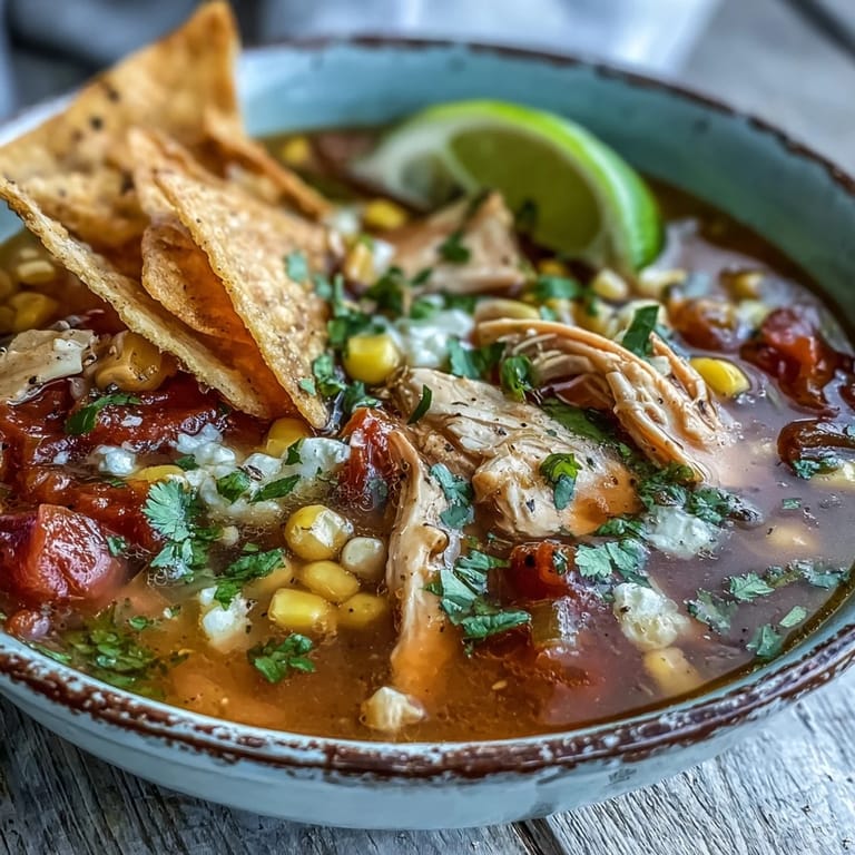 Save There's something about the sound of tortilla strips crisping in the oven that signals comfort is on the way. I discovered this soup during a chilly afternoon when my pantry felt sparse, but somehow the basics came together into something unexpectedly vibrant. The first spoonful—that balance of smoky spices, bright lime, and tender chicken swimming in tomato broth—made me understand why this dish shows up on tables across Mexico and beyond. It's the kind of recipe that tastes like it took hours but rewards you in under 45 minutes. Since that day, it's become my go-to when I need something nourishing that feels both simple and special.