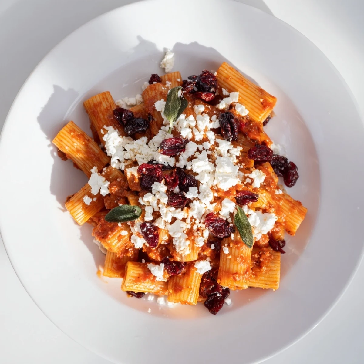 Save A cozy, savory-sweet pasta casserole featuring tangy feta, tart cranberries, earthy sage, and golden baked pasta—perfect for fall or holiday gatherings.