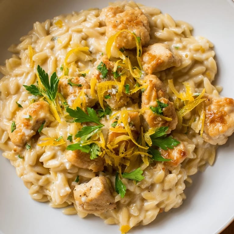 Save There's something about the smell of lemon zest hitting a hot pan that makes me stop whatever I'm doing. Years ago, I was rushing through a weeknight dinner when a friend mentioned she'd made creamy lemon chicken orzo on autopilot—no fuss, no complicated technique, just one skillet and thirty minutes. I tried it that night, and the bright, warm simplicity of it won me over completely. Now it's become my go-to when I want something that feels both impressive and entirely manageable.
