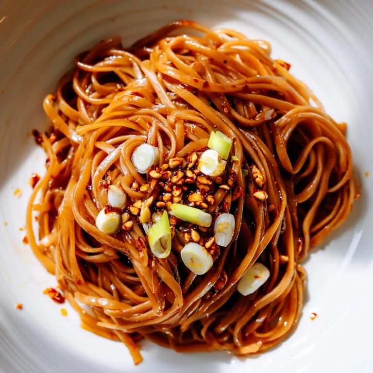 Save There's a Tuesday night I keep coming back to—standing in my kitchen with the windows fogged up, a late craving hitting hard, and exactly twenty minutes before I needed to be somewhere. I'd just discovered this garlic chili oil technique watching someone cook on their phone, and I had most of the ingredients scattered around. The noodles went into boiling water, the garlic hit hot oil and suddenly the whole apartment smelled like something I couldn't quite place but desperately wanted to eat. That night turned into dozens of nights, because once you taste noodles coated in that fragrant, fiery oil, the regular versions feel flat.