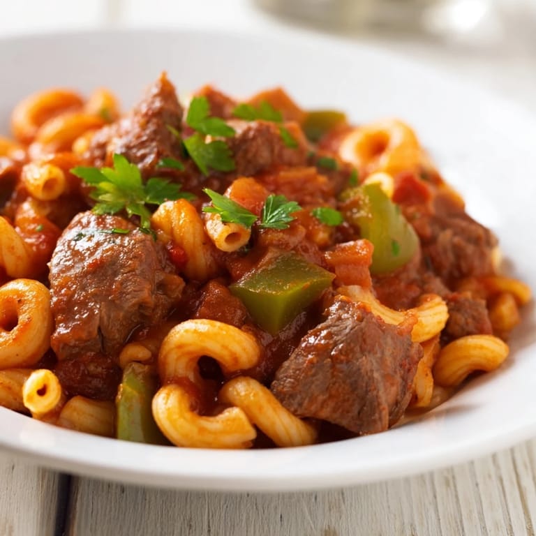 Save A comforting, budget-friendly goulash featuring tender beef or turkey simmered with tomatoes, spices, and pasta. Perfect for an easy, nostalgic family meal.