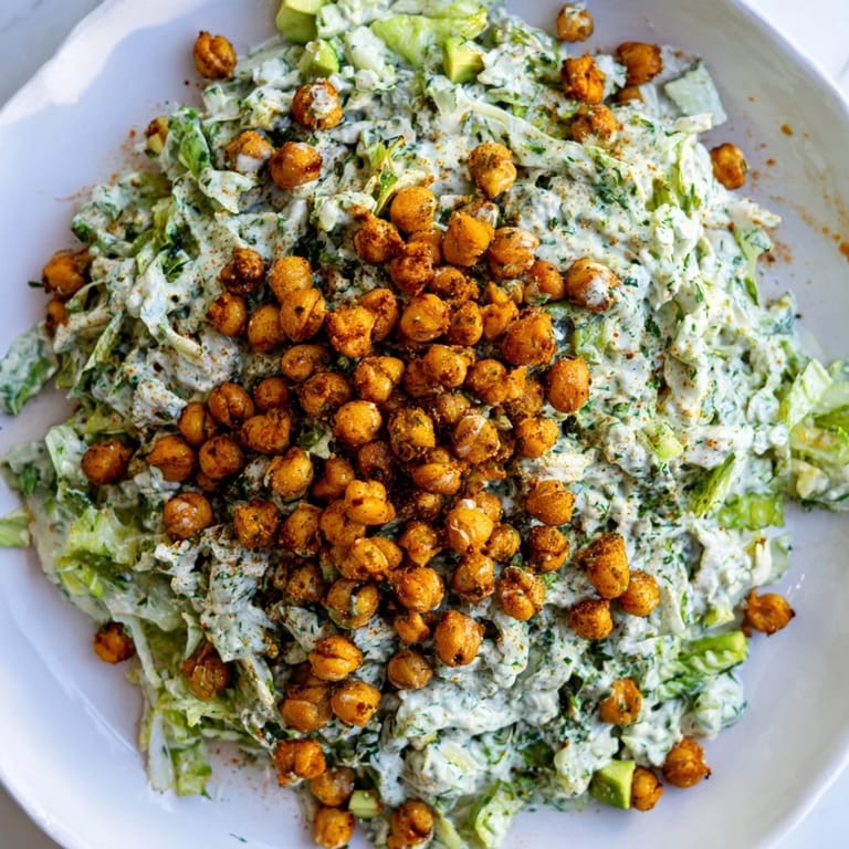Save I discovered this salad on a Tuesday afternoon when my crisper drawer was overflowing with greens and I'd just bought a bunch of fresh herbs at the farmer's market on impulse. The air fryer was calling to me from the counter, and I suddenly wondered what would happen if I turned those canned chickpeas into something crunchy and golden. What started as a kitchen experiment became the thing I make when I want to feel like I'm actually feeding myself well, not just eating lunch.