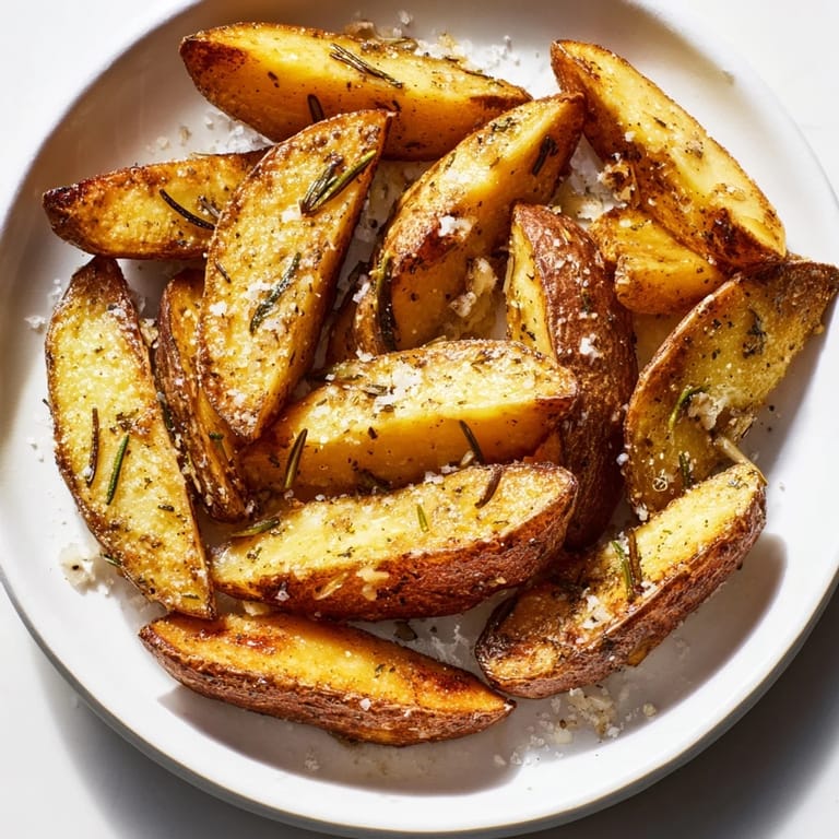 Save Golden, crispy potato wedges infused with fragrant rosemary and a hint of garlic, perfect as a side or snack.